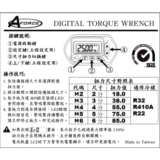 AFORCE空調電子扭力扳手(R410A/R22)