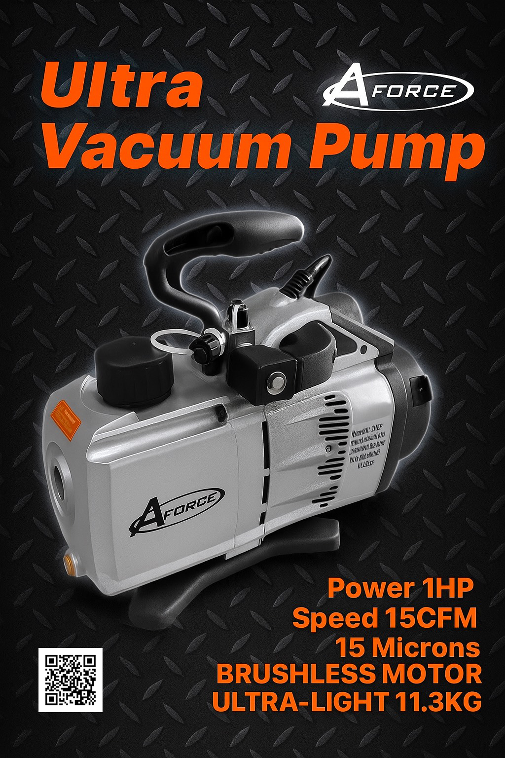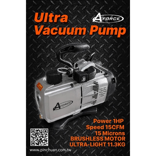 AFORCE 專業級1HP馬力雙段無刷真空機 NO.AF-GTX1500 ♦業界最輕巧1HP真空機 "超輕11.3Kg !!! " ♦業界最超速1HP真空機 "超速15CFM !!! "(435L/min) ♦業界超真空1HP真空機 "超低15Microns !!! " ♦採用精密永磁無刷馬達 超耐運轉24小時 !!! " ♦智能變頻防過熱造成真空度熱衰 "超智能保真空度!!! " ♦配備電磁逆止閥及電源線收納區收納超便利!!!